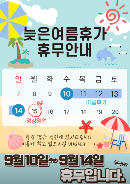 *9월 10~14 늦은 휴가 가신다고 하니 헛걸음 하지마시구요 ㅎㅎ!