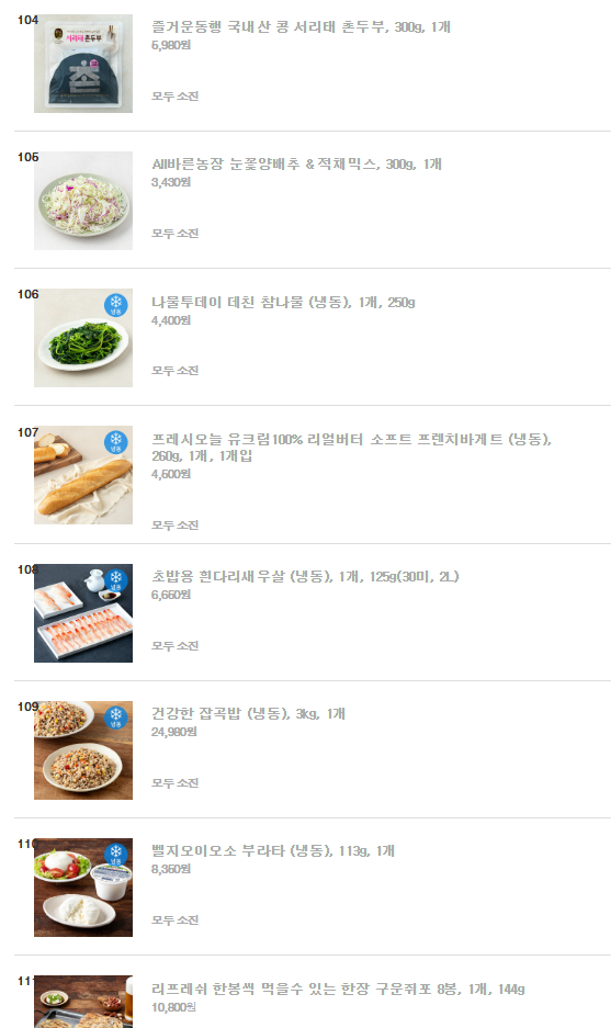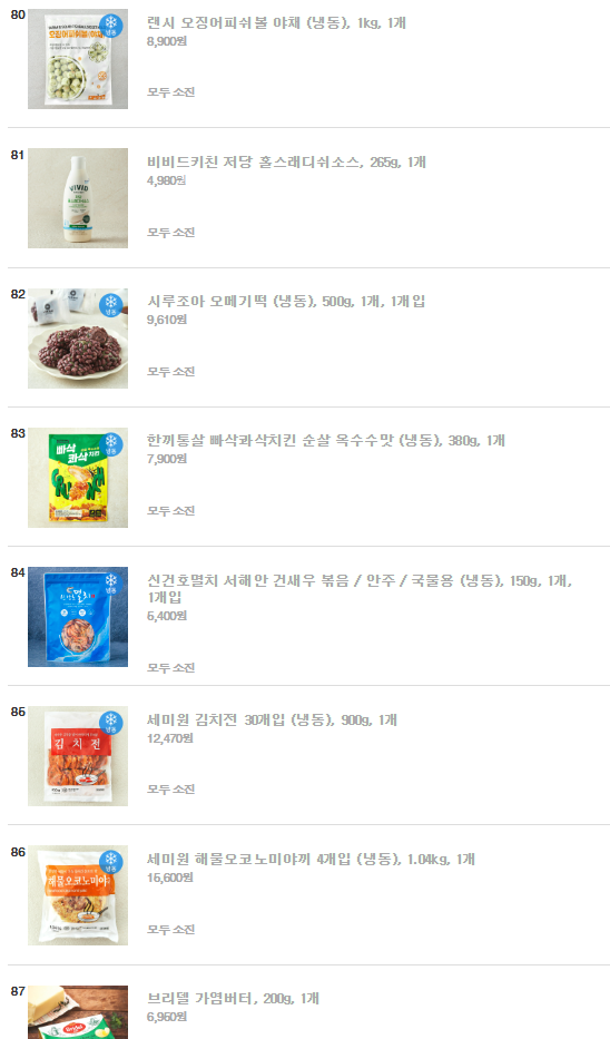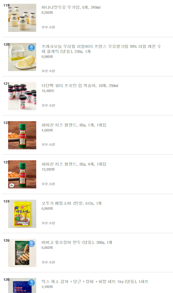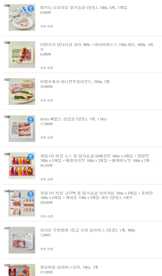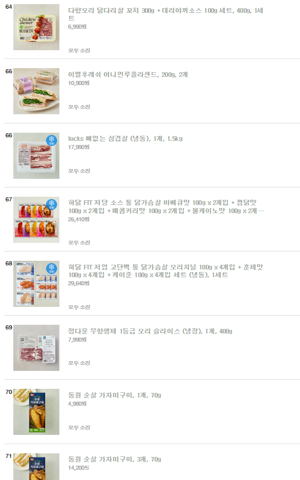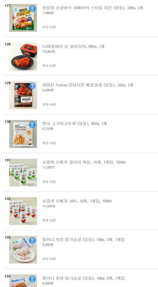 고등어, 닭정육,요구르트, 버터 등도 나오네용