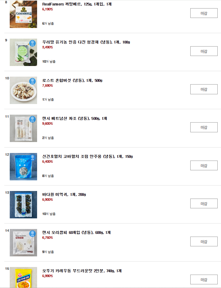 이번엔 식료품 위주로 싼 제품이 많아서 가슴아프네요 ㅠㅠ