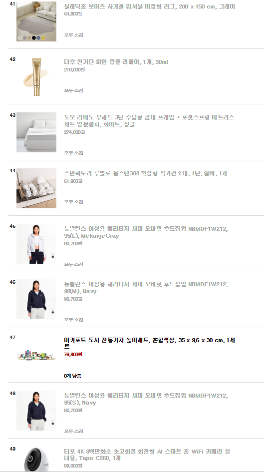이번엔 메트리스?같은 것들도 많이 나오고 옷들이 많더라구요