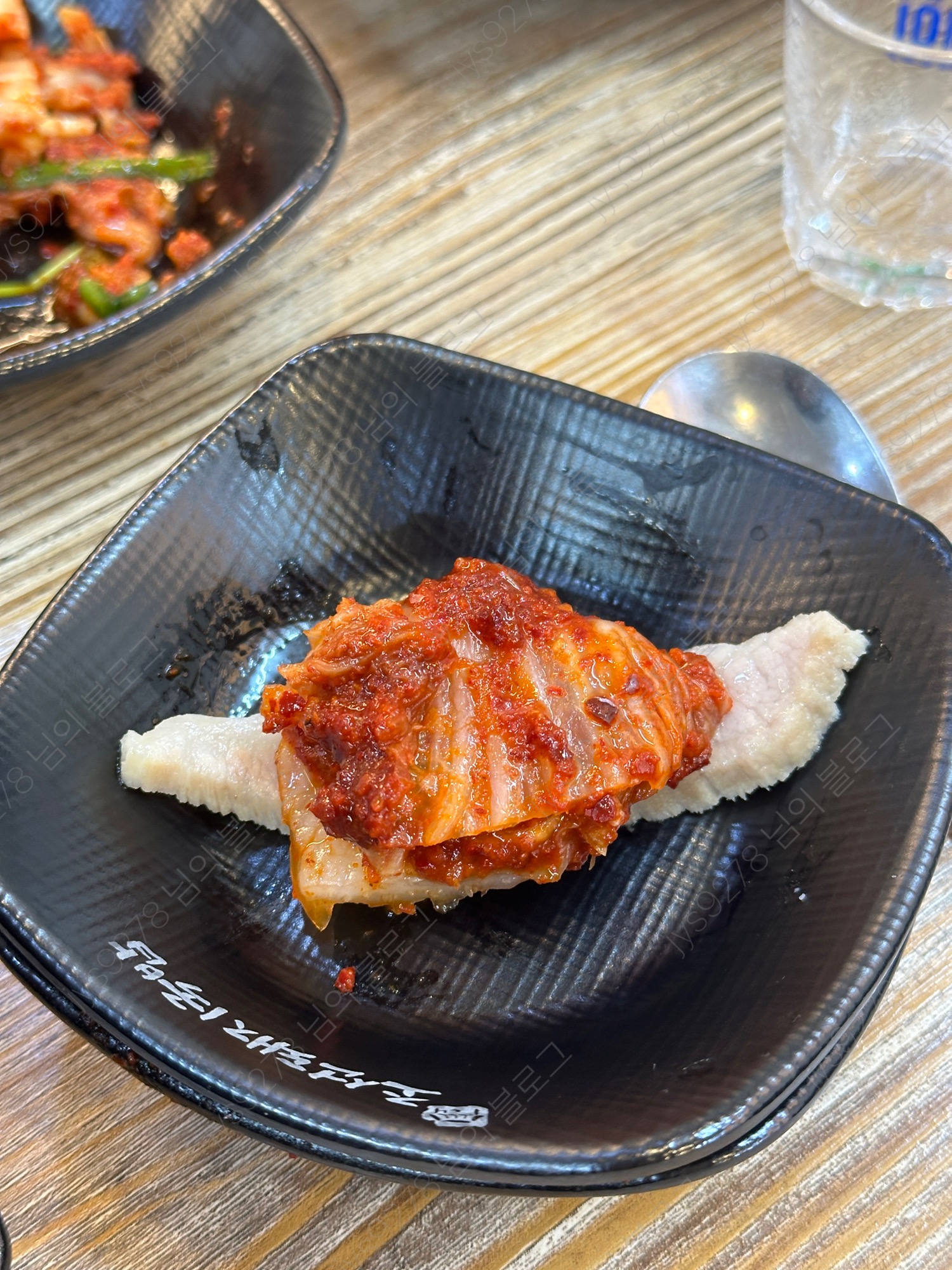 맛보기 수육도 보쌈김치와 싸먹어 봅니다.