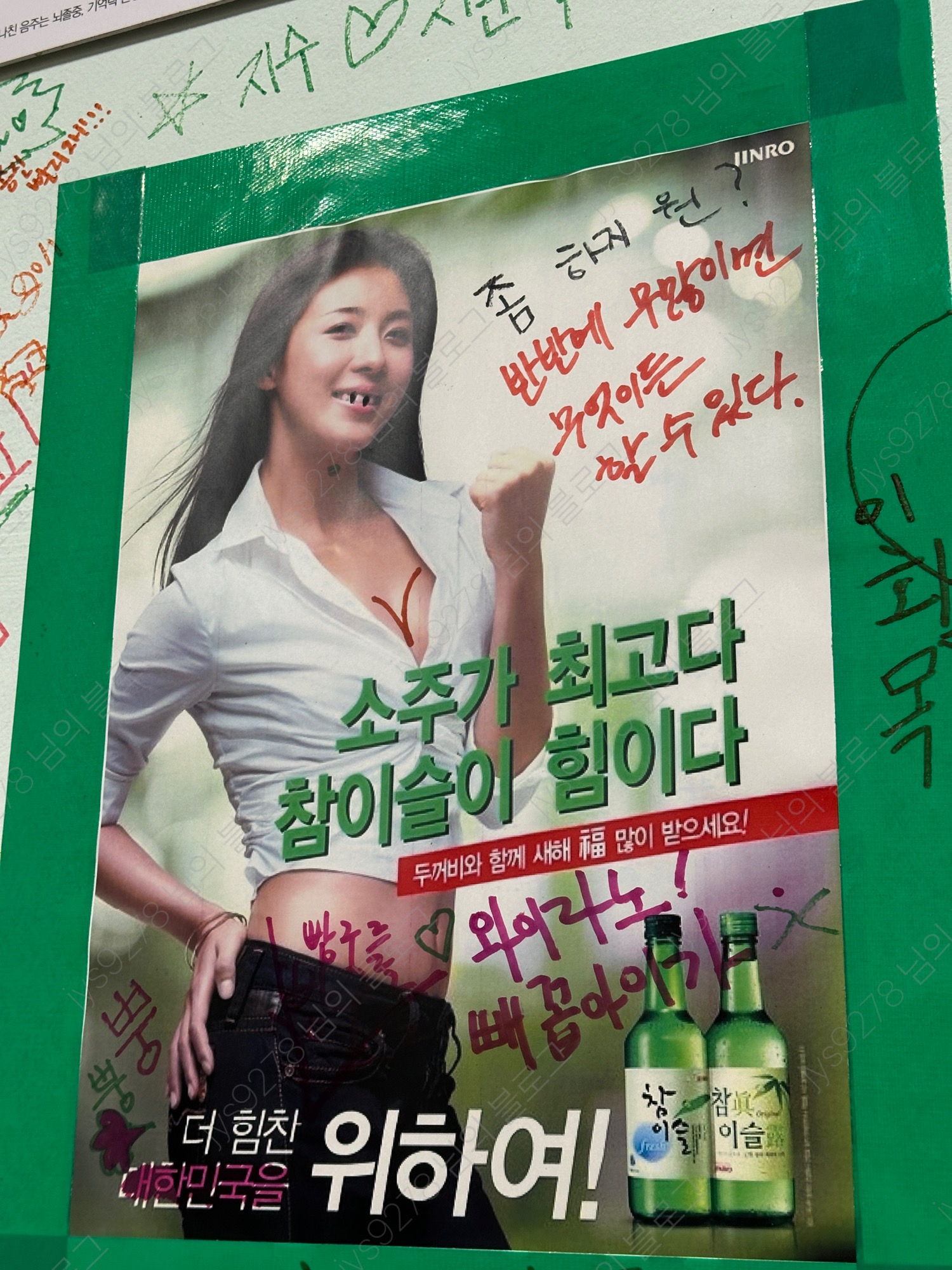 옜날 소주 주포스터에 막서를 해놓으셨더라구요 ㅋ.ㅋ