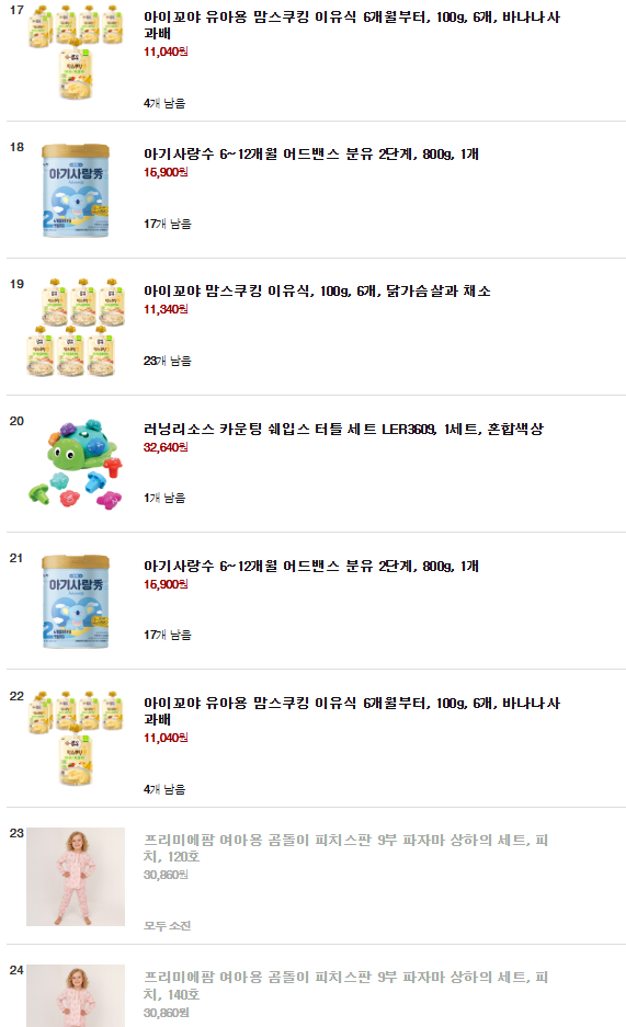 그리고 애기용 잠옷이랑 애기용 신발도 나옵니다