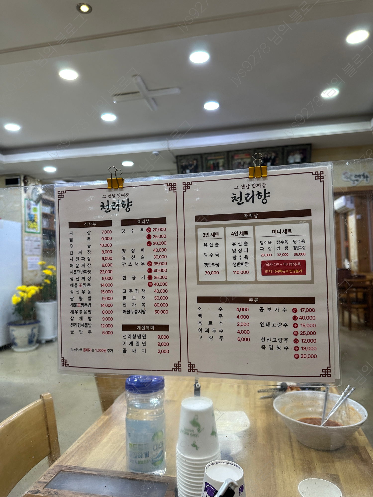 테이블에는 식초, 고춧가루, 수저, 종이컵 준비 완!