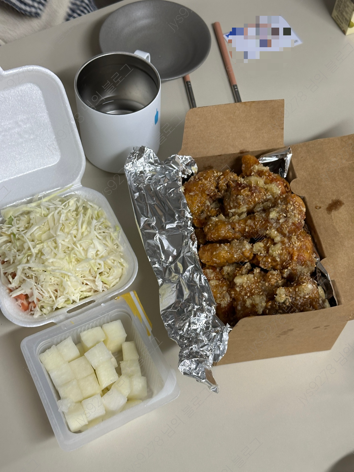 여튼 포장해와서 늦게 먹었는데도 살짝 식었는데도 맛있는 닭고방의 마늘치킨이었습니다.