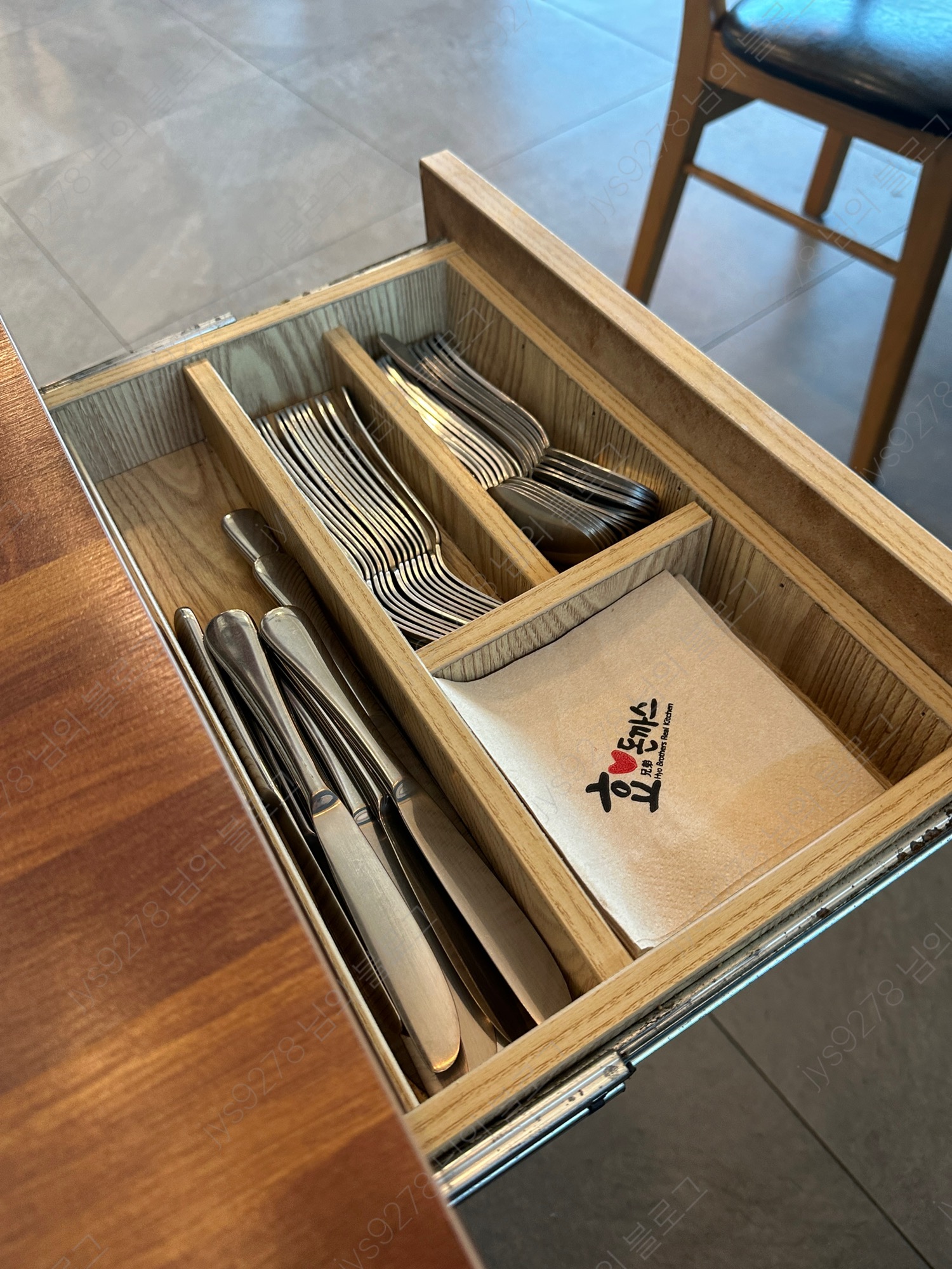 테이블마다 나이프, 포크, 스푼 다 있구요 ㅎㅎ
