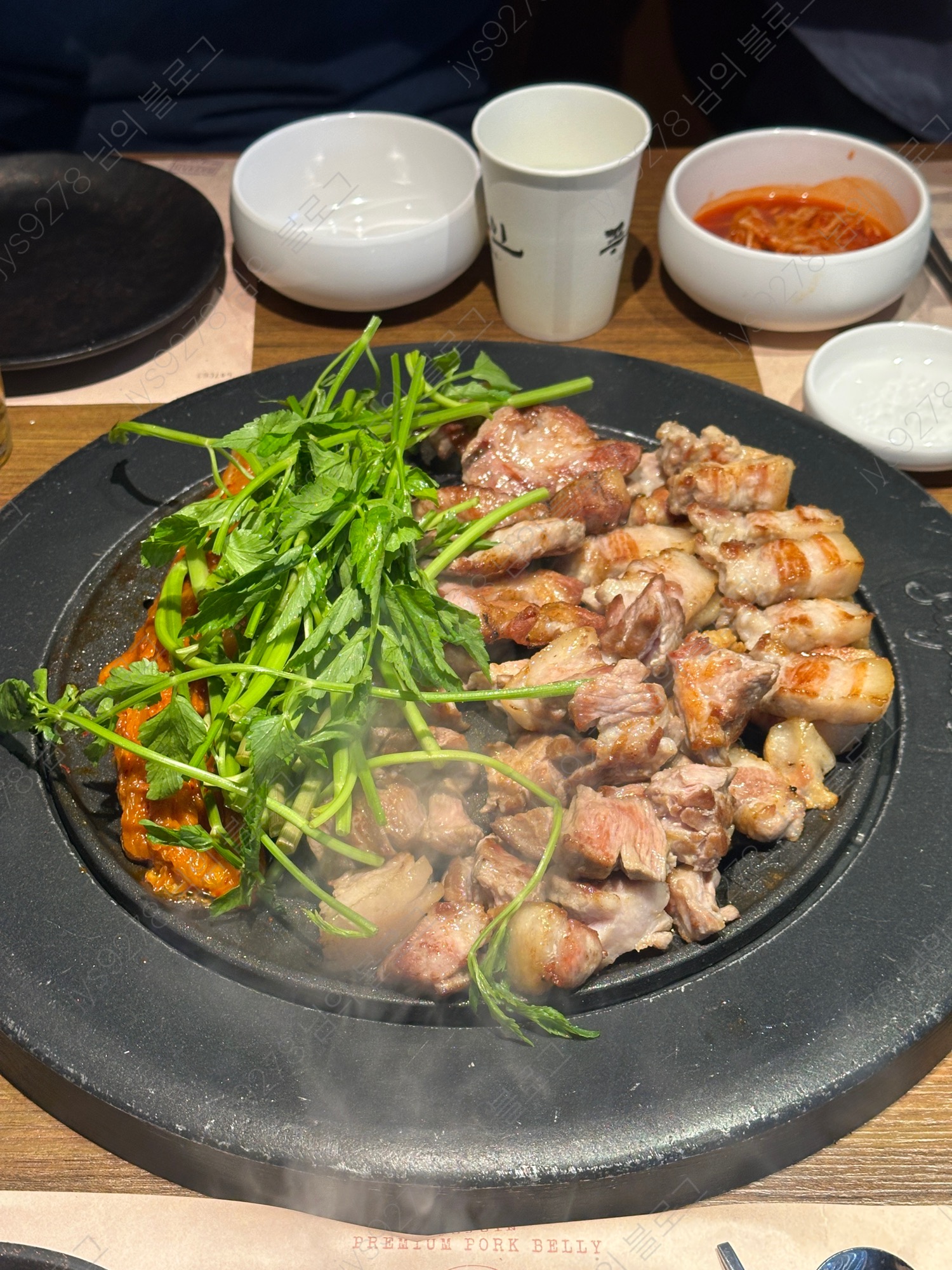 삼겹살 + 목살 + 가브리살 + 미나리 + 묵은지