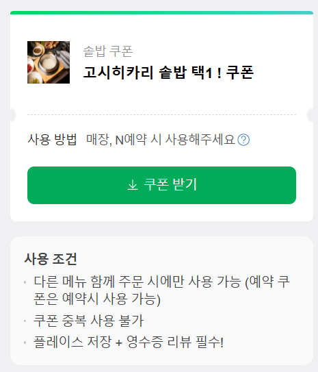 네이버에서 고시히카리 솥밥 쿠폰도 제공하고 있으니